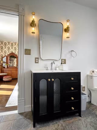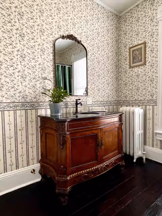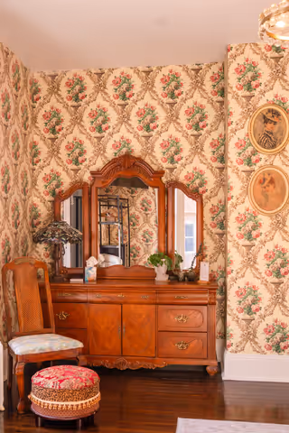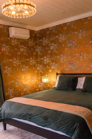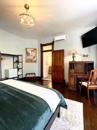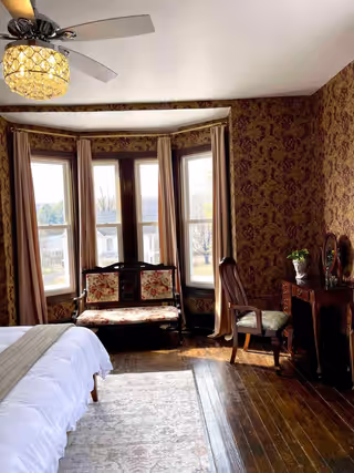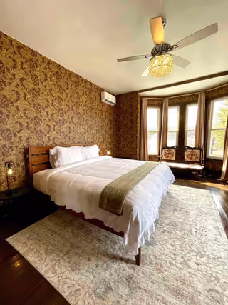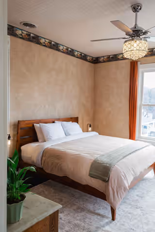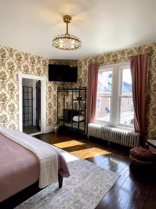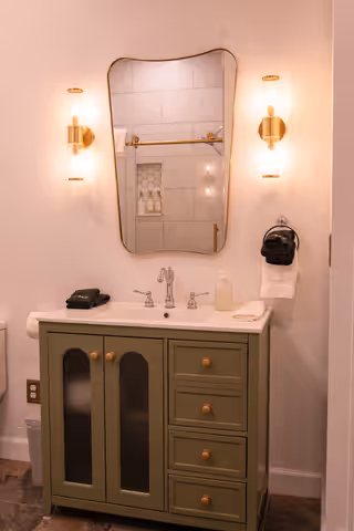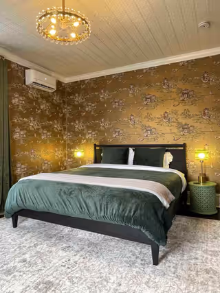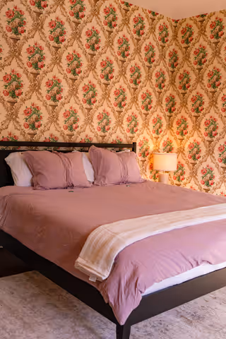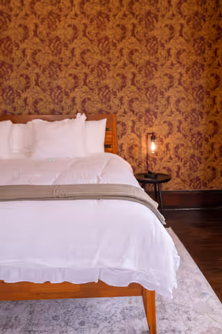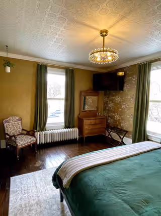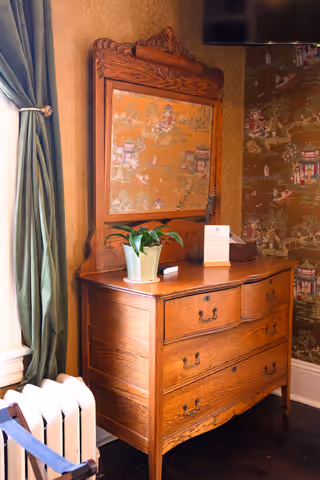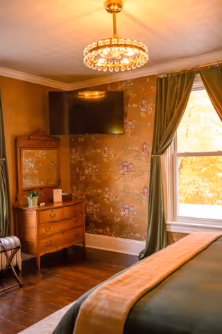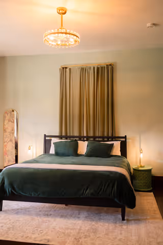 Available on its own or paired with Marigold as a two-bedroom suite with a shared bath, Oak & Ivy is a rich, comfortable room.